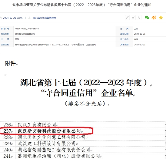 為進一步發(fā)揮信用監(jiān)管的基礎(chǔ)性作用,推進企業(yè)合同信用體系建設(shè),根據(jù)《湖北省合同監(jiān)督條例》《湖北省企業(yè)合同信用狀況公布暫行辦法》規(guī)定,省(市)市場監(jiān)管局、省(市)發(fā)展改革委聯(lián)合開展了2022—2023年度武漢市“守合同重信用”企業(yè)公布活動和第十七屆湖北省“守合同重信用”企業(yè)推薦活動。我司被認(rèn)定為“2022-2023年度武漢市守合同重信用企業(yè)”和“湖北省第十七屆(2022-2023年度)守合同重信用企業(yè)”。